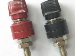 本厂自行研制生产的107.333.555和特大555接线柱,颜色通用的有红黑两种,绝缘部分为电木粉,耐压可高达5000V ,导电部采分为铜材料,具有导电能力强,性能好.107.333.555和特大555外径分别为M5,M6,M8和M10,,.本产品除了美观大方,而且质优价廉.欢迎来人来电洽谈订货