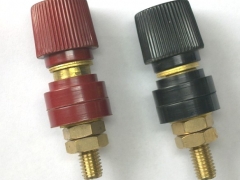 本厂自行研制生产的107.333.555和特大555接线柱,颜色通用的有红黑两种,绝缘部分为电木粉,耐压可高达5000V ,导电部采分为铜材料,具有导电能力强,性能好.107.333.555和特大555外径分别为M5,M6,M8和M10,,.本产品除了美观大方,而且质优价廉.欢迎来人来电洽谈订货